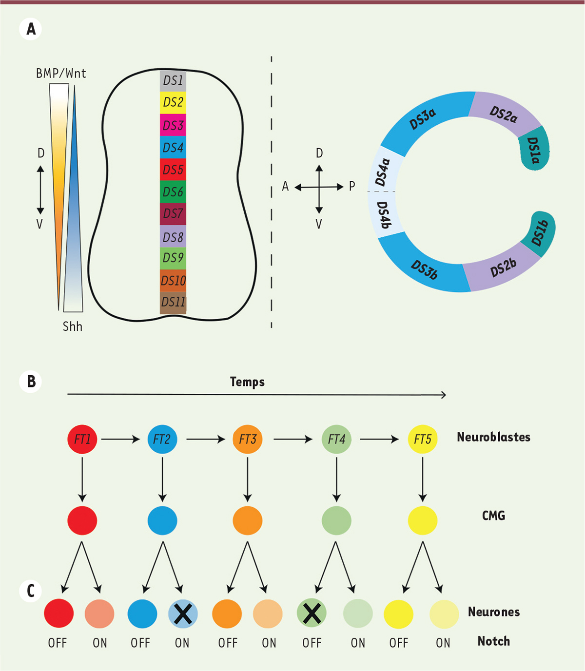 | dc.description.abstract | One of the greatest challenges in neuroscience is to understand how a complex structure, such as the brain, is built. Spatial and temporal patternings of neuronal progenitors are responsible for the generation of most of the neuronal diversity observed in the brain. This review focuses on the temporal patterning of neuronal progenitors, i.e. the sequential expression of transcription factors that changes the capacity of stem cells to generate different neuronal types, and which is conserved in animals. Recent papers have offered a near complete understanding of the mechanism of temporal patterning in the developing visual system of